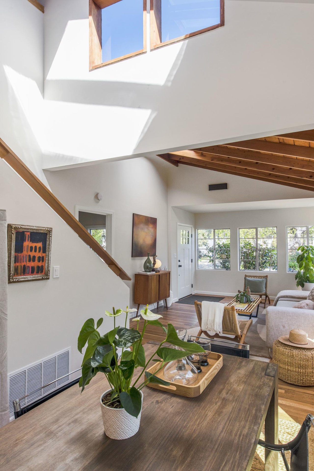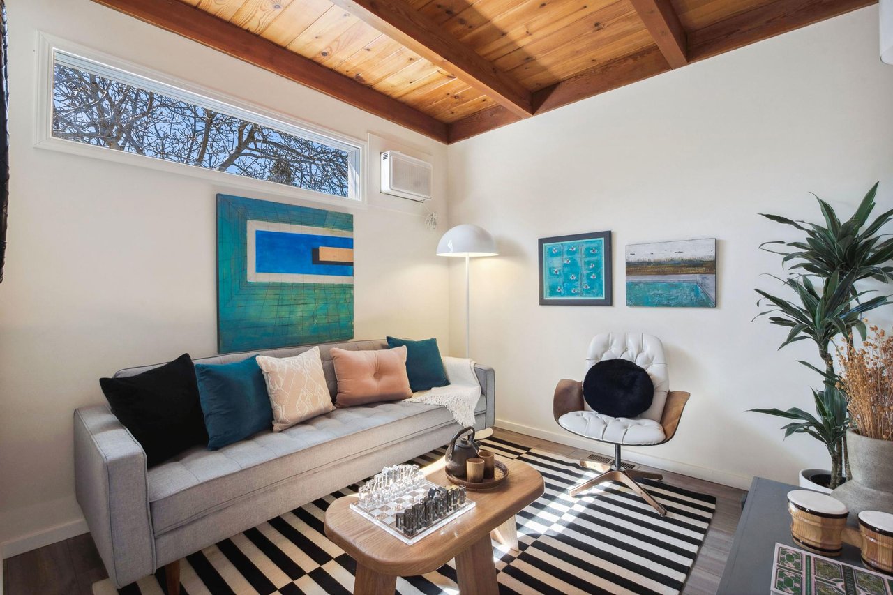 No need to move to a mountain cabin. 2316 Acton is like stepping into a sunbathed chalet, yet tucked right here in the heart of Berkeley. 1,534 sqft, with sky high wood ceilings, oak floors, & natural light pouring through the many windows; immediately, you'll feel the ease & warmth endowed by entering a truly special space. The living room flows into the dining area, then a large, open kitchen with ample space for cooking & entertaining. A cozy bedroom, an office (listed as a 4th bedroom on public records) & a family room round out the first floor, as well as a newly remodeled bathroom. Easily move from the kitchen to the deck to enjoy meals outdoors, garden and lounge under the tree or play on the lawn. The detached garage functions as a workshop, storage or bonus area. Upstairs, find 2 more bedrooms (including the primary) & a bathroom, in the vein of the rest of the home; vaulted ceilings, fresh white walls and wood tones, bathed in warm natural light. 2316 Acton is the vacation home you never have to leave, but when you must, there is much to do outside; tucked in the thrumming heart of Central Berkeley, surrounded by multiple parks within just a few blocks, beloved local restaurants and grocery stores, as well as main transportation lines. www.2316acton.com